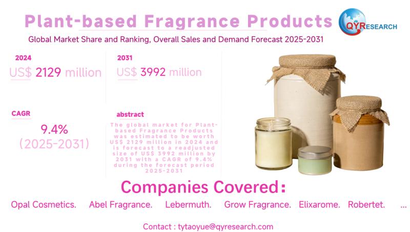Unlock the Future of the Plant-based Fragrance Products Market: Comprehensive Global Market Report 2025-2031Global leading market research publisher QYResearch published the release of its latest report, "Plant-based Fragrance Products - Global Market Share, Ranking, Sales, and Demand Forecast 2025-2031". This in-depth report provides a complete analysis of the global Plant-based Fragrance Products market, offering critical insights into market size, share, demand, industry development status, and future forecasts. Whether you're a stakeholder, investor, or industry player, this report equips you with the data and strategies needed to stay ahead in a rapidly evolving market.