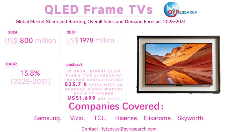 Unlock the Future of the QLED Frame TVs Market: Comprehensive Global Market Report 2025-2031Global leading market research publisher QYResearch published the release of its latest report, "QLED Frame TVs - Global Market Share, Ranking, Sales, and Demand Forecast 2025-2031". This in-depth report provides a complete analysis of the global QLED Frame TVs market, offering critical insights into market size, share, demand, industry development status, and future forecasts. Whether you're a stakeholder, investor, or industry player, this report equips you with the data and strategies needed to stay ahead in a rapidly evolving market.