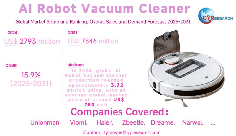 Global leading market research publisher QYResearch published the release of its latest report, "AI Robot Vacuum Cleaner - Global Market Share, Ranking, Sales, and Demand Forecast 2025-2031". This in-depth report provides a complete analysis of the global AI Robot Vacuum Cleaner market, offering critical insights into market size, share, demand, industry development status, and future forecasts.…