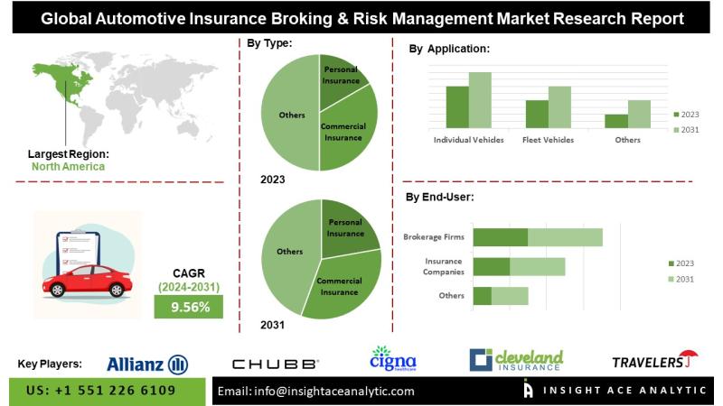 InsightAce Analytic Pvt. Ltd. announces the release of a market assessment report on the "Global Automotive Insurance Broking & Risk Management Market - (By Type (Personal Insurance, Commercial Insurance), By Application (Individual Vehicles, Fleet Vehicles), By End-User (Insurance Companies, Brokerage Firms), By Distribution Channel (Direct Sales, Online Platforms, Brokers), By Service Type (Risk Assessment, Claims Management, Policy Administration)), Trends, Industry Competition Analysis, Revenue and Forecast To 2031."