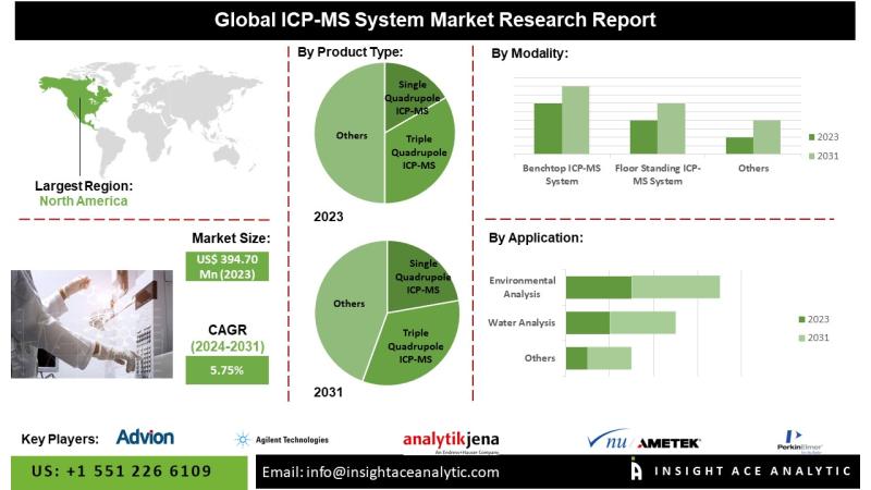 InsightAce Analytic Pvt. Ltd. announces the release of a market assessment report on the "Global ICP-MS System Market- (By Product Type (Single quadrupole ICP MS, Triple quadrupole ICP MS, Multi quadrupole ICP MS, High-resolution ICP MS, Multi collector ICP MS, Others), By Modality (Benchtop ICP MS System, Floor standing ICP MS System), By Application (Water analysis, Environmental analysis, Pharmaceutical and biomedical research, Geological and mining research, Food and beverage testing,…