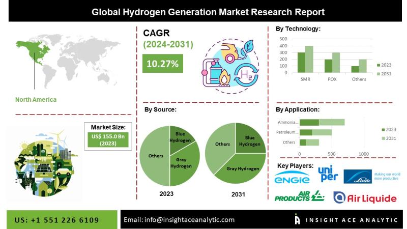 InsightAce Analytic Pvt. Ltd. announces the release of a market assessment report on the "Global Hydrogen Generation Market Size, Share & Trends Analysis Report By Technology (SMR, POX, Coal Gasification, Electrolysis), Application (Refinery, Ammonia Production, Methanol Production, Transportation, Power Generation), Source (Blue, Green, Gray), Generation Mode (Captive, And Merchant)- Market Outlook And Industry Analysis 2034"