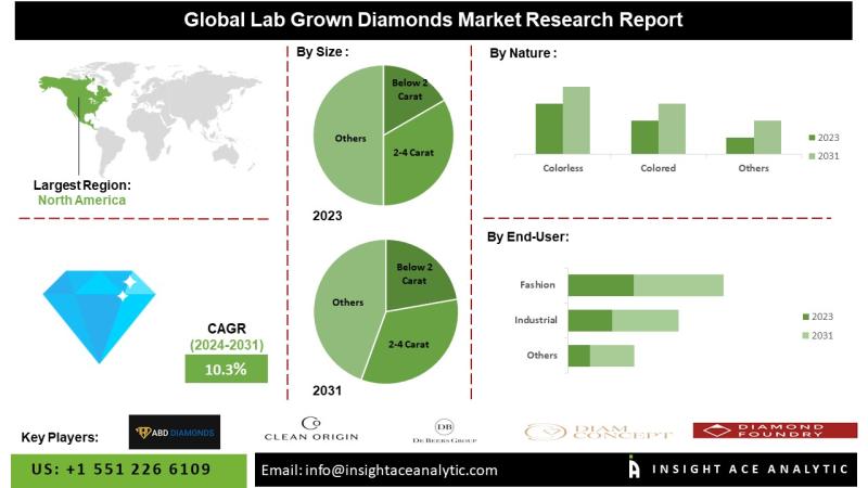 InsightAce Analytic Pvt. Ltd. announces the release of a market assessment report on the "Global Lab-grown Diamonds Market- (By Manufacturing Method (HPHT and CVD), By Size (Below 2 Carat, 2-4 Carat, and Above 4 Carat), By Nature (Colorless and Colored), By Application (Fashion and Industrial)) Trends, Industry Competition Analysis, Revenue and Forecast To 2034."