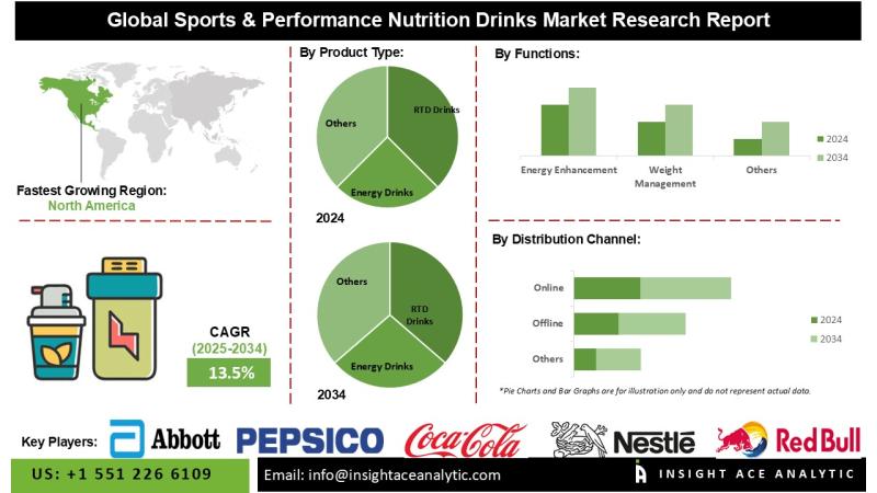 InsightAce Analytic Pvt. Ltd. announces the release of a market assessment report on the "Sports & Performance Nutrition Drinks Market"-, By Product Type (RTD (Ready-to-Drink), Energy Drinks, Protein Drinks, Electrolyte-Enhanced Drinks, Other Drinks), By Functions (Energy Enhancement, Hydration & Electrolyte Balance, Weight Management, Muscle Recovery & Repair, General Wellness), By Distribution Channel(Online, Offline), Trends, Industry Competition Analysis, Revenue And Forecast To 2034."