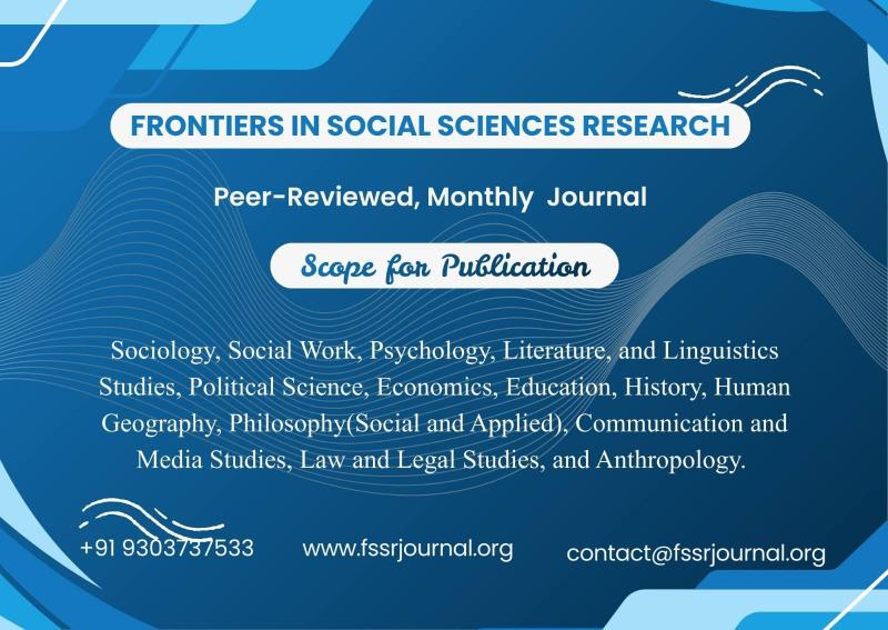 Frontiers in Social Sciences Research (FSSR) is a newly launched peer-reviewed, open-access academic journal in India, committed to publishing high-quality and original research across the broad spectrum of social sciences. As a peer-reviewed social sciences journal, FSSR follows a rigorous and transparent peer review process to ensure academic integrity, originality, and scholarly relevance in every published manuscript.The journal has been officially awarded its International Standard Serial Number (ISSN 3108-0324) on November 27, 2025, marking an important milestone in its establishment as a credible academic publication.