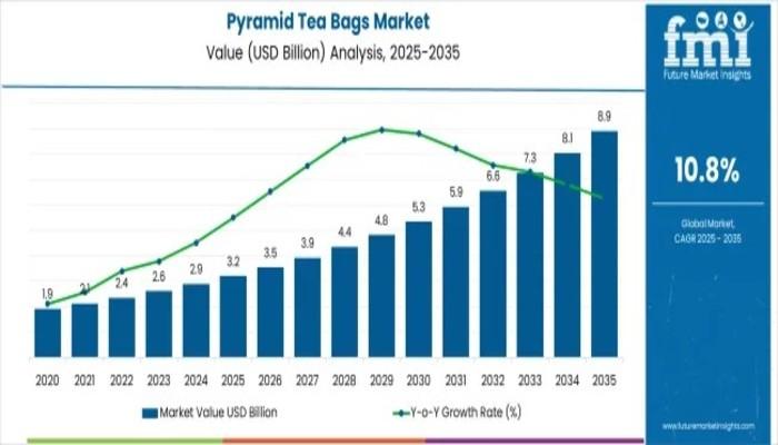 The global pyramid tea bags market is entering a decade of transformative expansion, projected to rise from USD 3.2 billion in 2025 to USD 8.9 billion by 2035. This represents an impressive 178.1% total growth, driven by consumers' increasing preference for premium tea formats, transparent brewing experiences, and whole-leaf infusion solutions. With a robust CAGR of 10.8%, the industry is gearing up for significant innovation, investment, and technology adoption from…