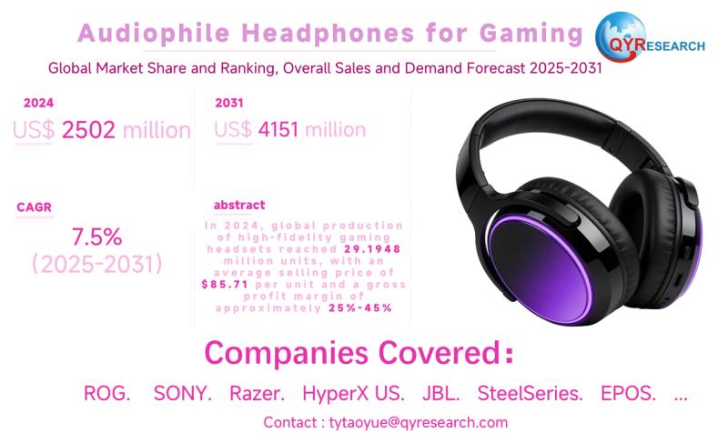 Unlock the Future of the Audiophile Headphones for Gaming Market: Comprehensive Global Market Report 2025-2031Global leading market research publisher QYResearch published the release of its latest report, "Audiophile Headphones for Gaming - Global Market Share, Ranking, Sales, and Demand Forecast 2025-2031". This in-depth report provides a complete analysis of the global Audiophile Headphones for Gaming market, offering critical insights into market size, share, demand, industry development status, and future forecasts. Whether you're a stakeholder, investor, or industry player, this report equips you with the data and strategies needed to stay ahead in a rapidly evolving market.