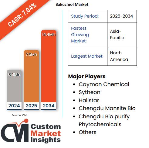 Global Bakuchiol Market size was valued at USD 7.5 Million in 2025 and is expected to reach USD 14.4 Million by 2033 at a CAGR of 7.04% during the forecast period 2025 - 2034.