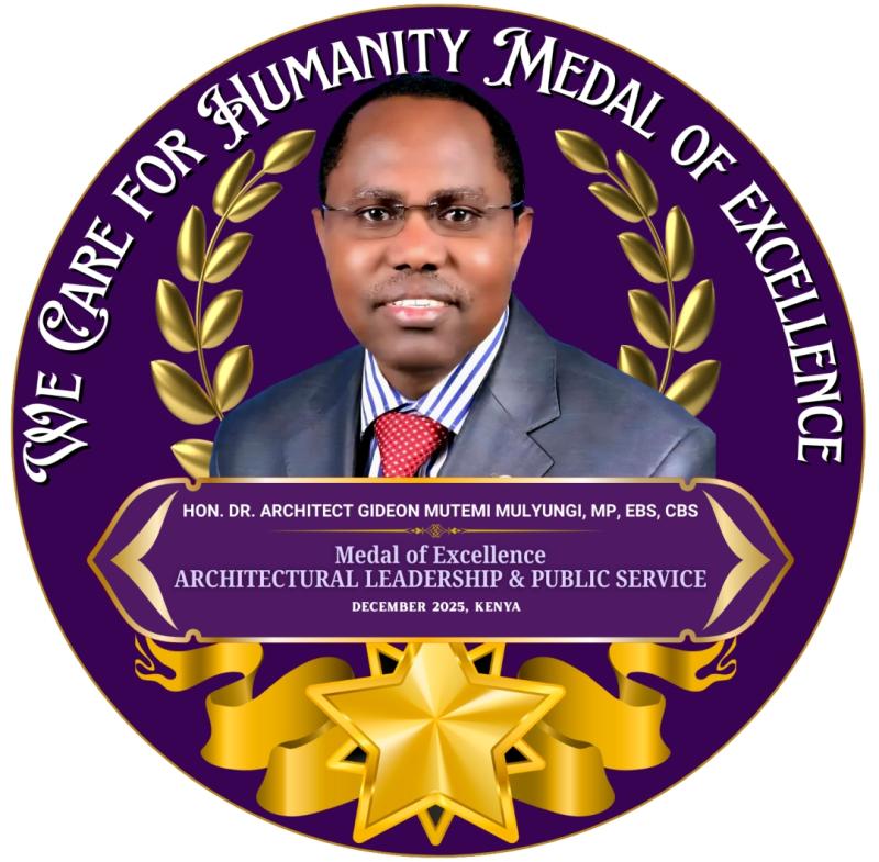 In a magnificent display of international diplomacy and recognition, We Care for Humanity (WCH) [https://www.blogger.com/blog/post/edit/723342615535856938/4561126741937952307#] officially conferred the Medal of Excellence for Architectural Leadership & Public Service upon Hon. Dr. Architect Gideon Mutemi Mulyungi, MP, EBS, CBS [https://www.blogger.com/blog/post/edit/723342615535856938/4561126741937952307#], of Kenya.