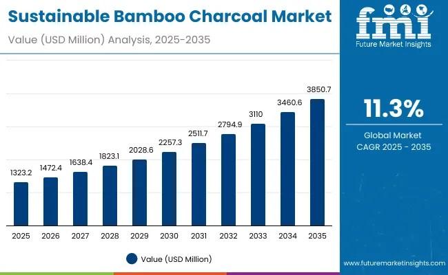 The Sustainable Bamboo Charcoal Market is entering a high-growth phase as global demand for eco-friendly, detoxifying, and clean-label personal care solutions accelerates. Valued at USD 1,323.2 million in 2025, the market is forecast to reach USD 3,850.7 million by 2035, registering a robust CAGR of 11.3% over the decade. This expansion represents an absolute growth opportunity of more than USD 2,527 million, nearly tripling market size and creating strong momentum…