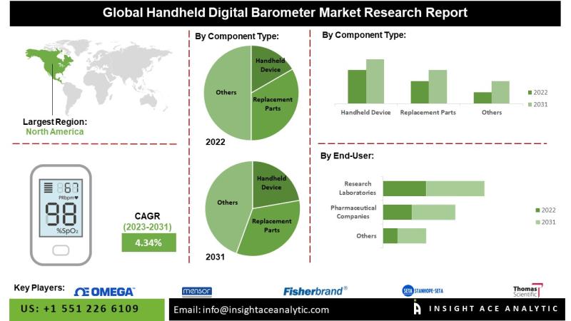 InsightAce Analytic Pvt. Ltd. announces the release of a market assessment report on the "Global Handheld Digital Barometer Market- (By Component Type (Handheld device, Replacement parts & accessories), By End-User (Pharmaceutical companies, Research laboratories, Academic research institutes, Winery and breweries, Oil and gas, CMO, Meteorological departments)), Trends, Industry Competition Analysis, Revenue and Forecast To 2031."