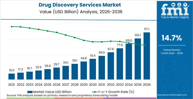 NEWARK, DE -The global Drug Discovery Services Market stands at USD 29,727.4 Million in 2026 and is forecast to expand significantly to USD 117,163.1 Million by 2036, reflecting a robust CAGR of 14.7%. This growth trajectory underscores the pharmaceutical industry's deepening reliance on outsourced models to counter declining internal discovery productivity amid escalating R&D costs. As FDA novel drug approvals increasingly stem from programs leveraging external discovery expertise, both large…