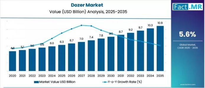The global dozer market is expected to witness steady expansion through 2026-2036, supported by sustained demand from infrastructure development, mining operations, and large-scale earthmoving activities. Dozers-also known as bulldozers-remain critical heavy equipment for grading, land clearing, mining, and construction applications, where power, durability, and reliability are essential.