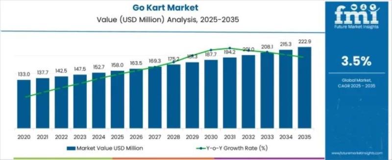 The global go kart market is entering a decade of steady, opportunity-led expansion, supported by rising demand for recreational motorsports, indoor entertainment, and electric mobility solutions. According to the latest industry outlook, the market is projected to grow from USD 158.0 million in 2025 to USD 222.9 million by 2035, registering a CAGR of 3.5% and generating an absolute dollar opportunity of USD 64.9 million over the forecast period.