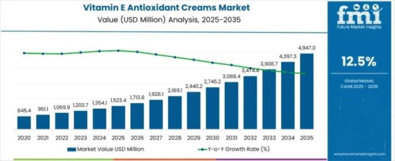 The global Vitamin E Antioxidant Creams Market is entering a high-growth phase, driven by rising awareness of antioxidant skincare, rapid innovation in formulation technologies, and the expansion strategies of both established and emerging manufacturers. According to the latest market outlook, the industry is projected to grow from USD 1,523.4 million in 2025 to USD 4,947 million by 2035, registering a strong CAGR of 12.5% and an absolute opportunity of USD…