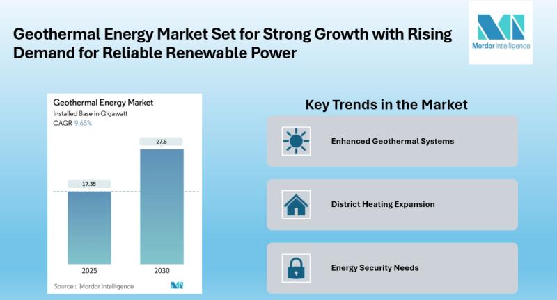 The global geothermal energy market is on track for significant expansion, with installed capacity projected to grow from 17.35 GW in 2025 to 27.5 GW by 2030, reflecting 9.65% CAGR.Gain Access to Detailed Segmentation, Trends, and Competitive Landscape: https://www.mordorintelligence.com/industry-reports/geothermal-energy-market?utm_source=openpr
