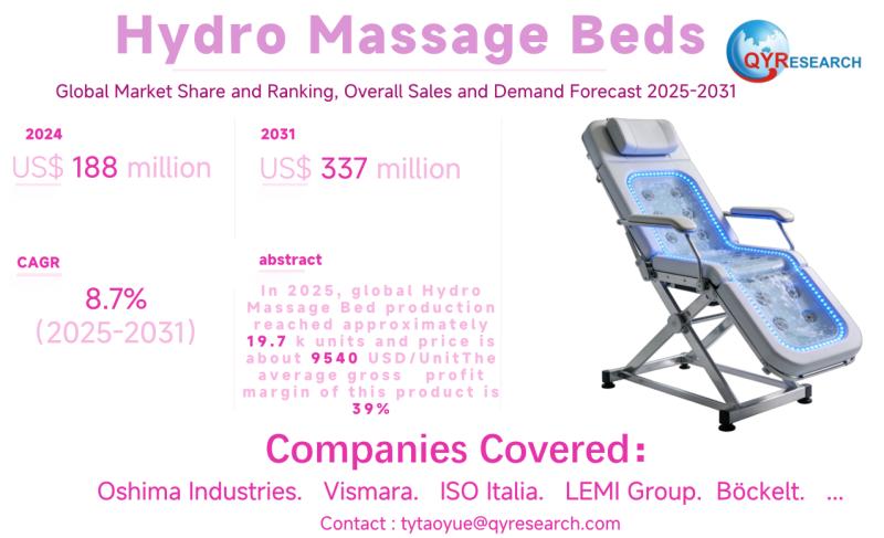 Global leading market research publisher QYResearch published the release of its latest report, "Hydro Massage Beds - Global Market Share, Ranking, Sales, and Demand Forecast 2025-2031". This in-depth report provides a complete analysis of the global Hydro Massage Beds market, offering critical insights into market size, share, demand, industry development status, and future forecasts. Whether you're a…