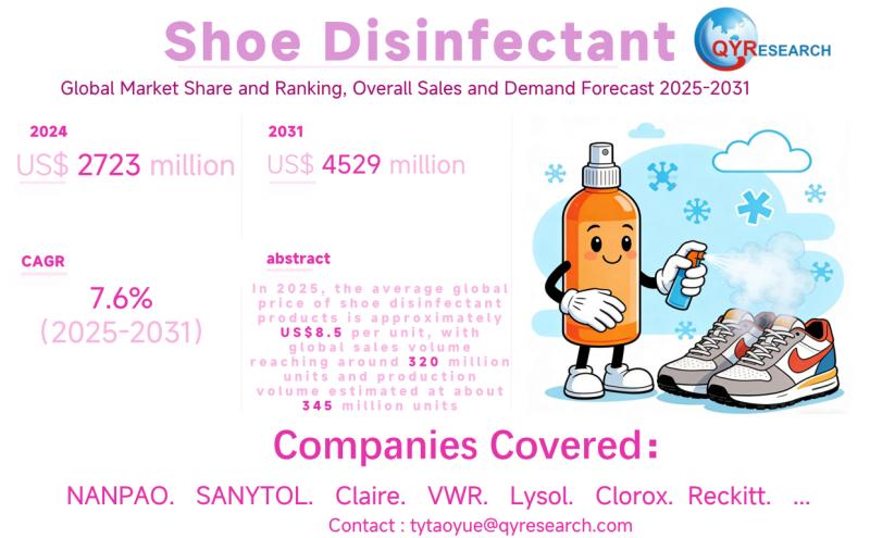 Global leading market research publisher QYResearch published the release of its latest report, "Shoe Disinfectant - Global Market Share, Ranking, Sales, and Demand Forecast 2025-2031". This in-depth report provides a complete analysis of the global Shoe Disinfectant market, offering critical insights into market size, share, demand, industry development status, and future forecasts. Whether you're a stakeholder, investor, or…