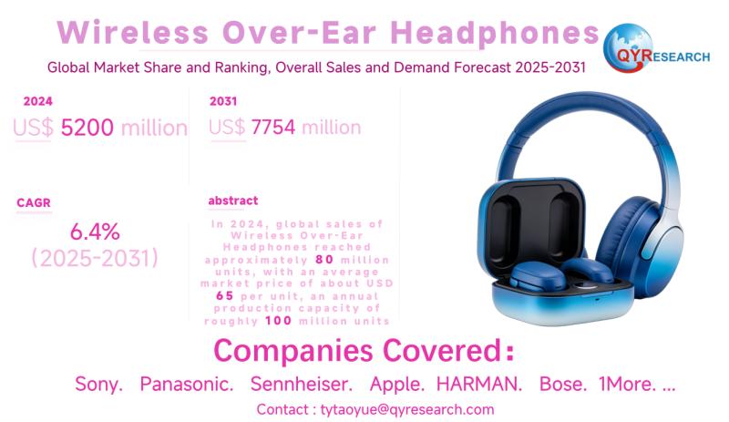 Unlock the Future of the Wireless Over-Ear Headphones Market: Comprehensive Global Market Report 2025-2031Global leading market research publisher QYResearch published the release of its latest report, "Wireless Over-Ear Headphones - Global Market Share, Ranking, Sales, and Demand Forecast 2025-2031". This in-depth report provides a complete analysis of the global Wireless Over-Ear Headphones market, offering critical insights into market size, share, demand, industry development status, and future forecasts. Whether you're a stakeholder, investor, or industry player, this report equips you with the data and strategies needed to stay ahead in a rapidly evolving market.