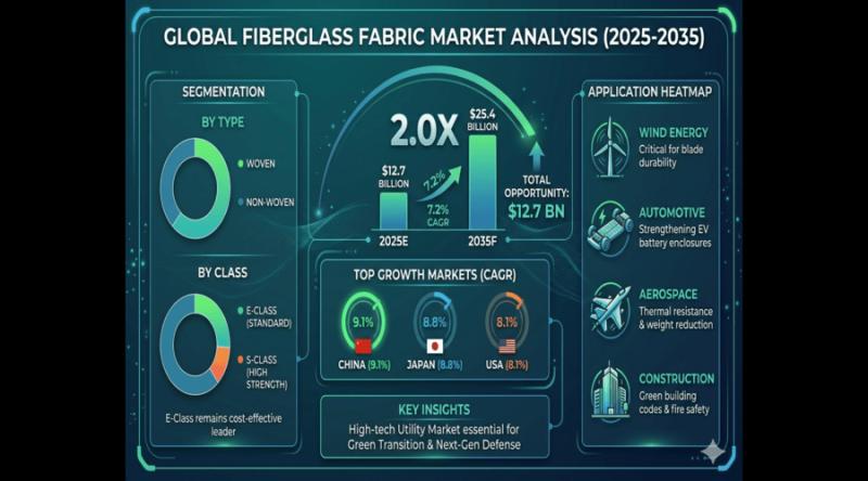 Global Fiberglass Fabric Market to Surpass USD 25.4 Billion by 2035; Wind Energy …