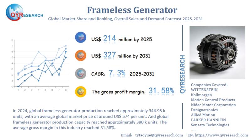 The global market for Frameless Generator was estimated to be worth US$ 198 million in 2024 and is forecast to a readjusted size of US$ 327 million by 2031 with a CAGR of 7.3% during the forecast period 2025-2031. Global Leading Market Research Publisher QYResearch announces the release of its latest report "Frameless Generator - Global Market Share and Ranking, Overall Sales and Demand Forecast 2025-2031". Based on current situation and