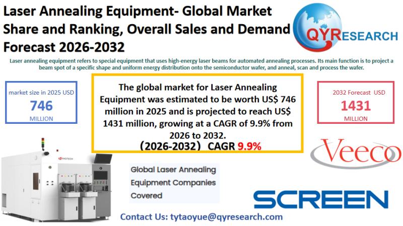 The global market for Laser Annealing Equipment was estimated to be worth US$ 746 million in 2025 and is projected to reach US$ 1431 million, growing at a CAGR of 9.9% from 2026 to 2032. Global Leading Market Research Publisher QYResearch announces the release of its latest report "Laser Annealing Equipment - Global Market Share and Ranking, Overall Sales and Demand Forecast 2025-2031". Based on current situation and impact historical analysis