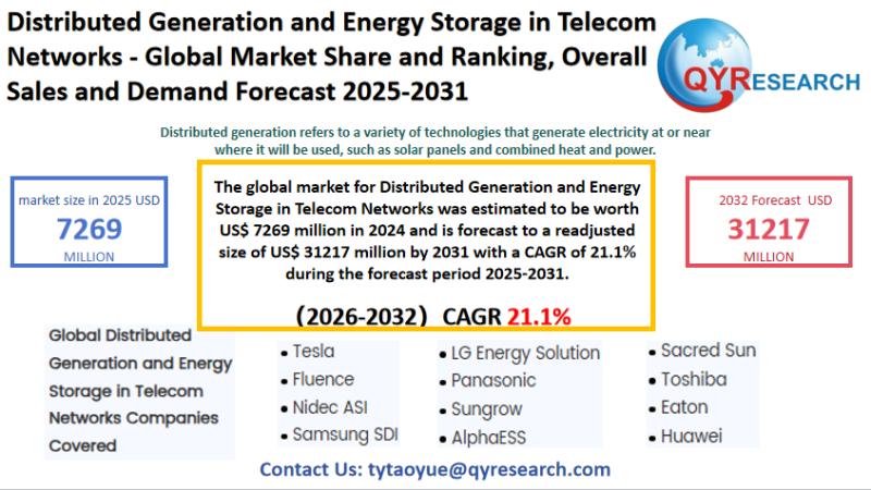 The global market for Distributed Generation and Energy Storage in Telecom Networks was estimated to be worth US$ 7269 million in 2024 and is forecast to a readjusted size of US$ 31217 million by 2031 with a CAGR of 21.1% during the forecast period 2025-2031.