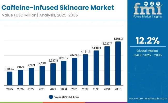 The global caffeine-infused skincare market is entering a high-growth decade, driven by rising demand for functional, science-backed beauty solutions. According to the latest industry analysis, the market is projected to expand from USD 1,852.7 million in 2025 to USD 5,866.3 million by 2035, registering a robust CAGR of 12.2% and delivering over 216% growth in value. This sharp acceleration highlights strong opportunities not only for established multinational beauty companies but…