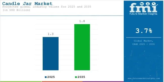 The global candle jar market is poised for steady growth, reaching an estimated USD 1.3 billion in 2025, and is projected to grow at a CAGR of 3.7%, ultimately achieving a market size of USD 1.8 billion by 2035. This growth trajectory is shaped by shifting consumer preferences, interior decor trends, and innovations in fragrance and candle packaging design.