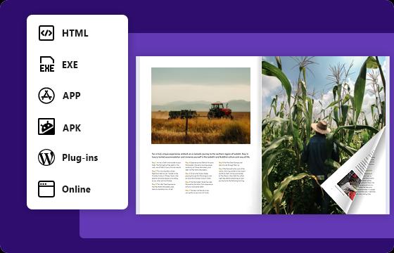 For publishing and distribution, the flipbook software offers multiple output options to meet diverse user demands. Flipbooks can be exported in HTML format for seamless web viewing. They can be published as a WordPress plugin for easy embedding on pages or posts. Moreover, users can export flipbooks in offline formats, including EXE (for Windows), APP (for macOS), and APK (for Android), allowing direct access and use on the respective platforms.