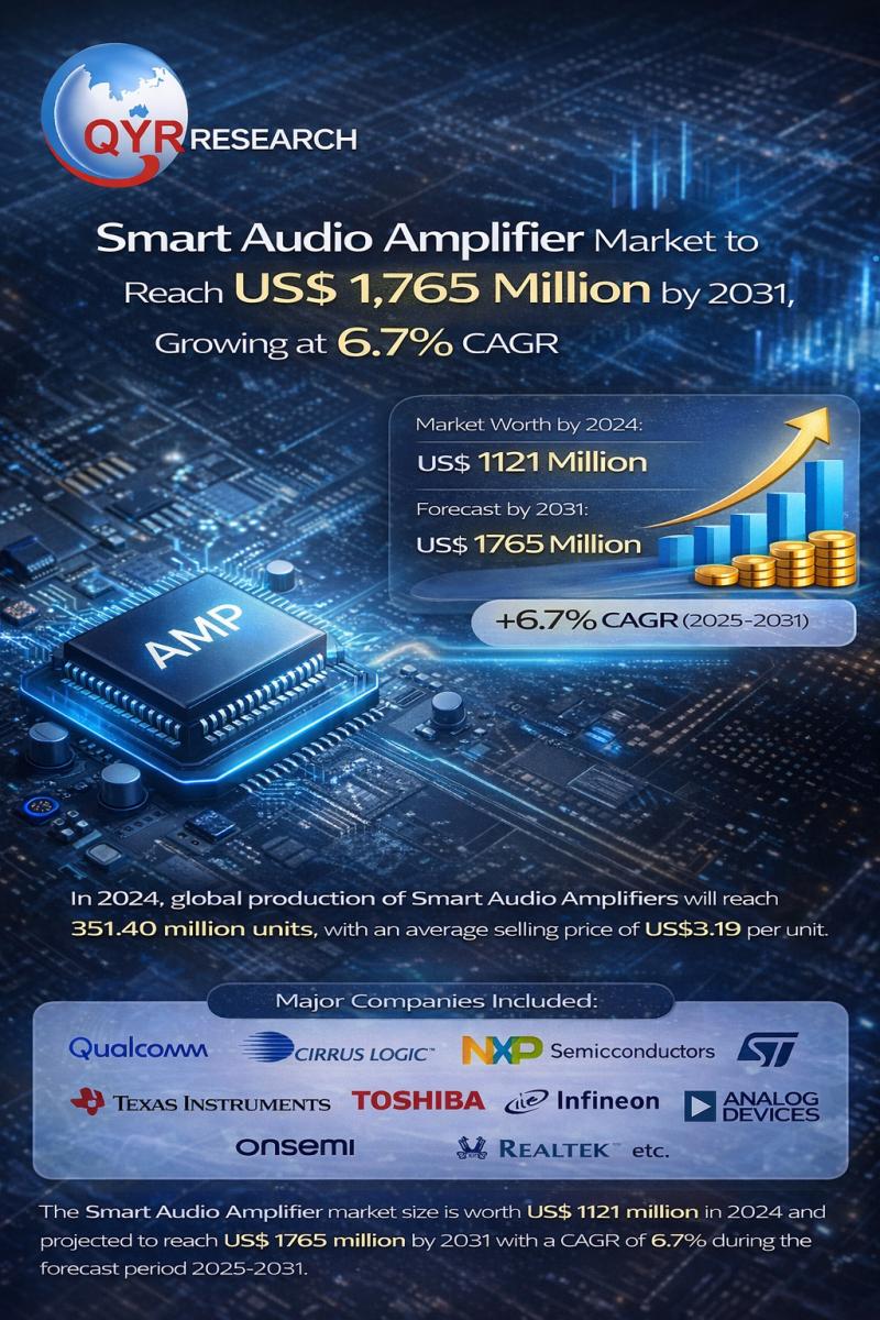 According to QY Research, the newly published report titled "Global Smart Audio Amplifier Market Share and Ranking, Overall Sales and Demand Forecast 2025-2031" presents an in-depth, data-driven analysis of the global smart audio amplifier industry. The study delivers validated market data, competitive intelligence, and forward-looking insights to support strategic planning for semiconductor vendors, audio IC designers, consumer electronics OEMs, and system integrators. By combining historical trends with long-term forecasts, the report clearly outlines market dynamics, technology evolution, demand drivers, and regional growth opportunities.