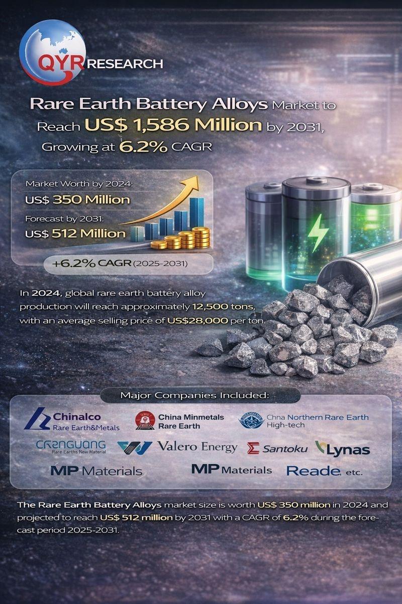 Global Rare Earth Battery Alloys Market to Reach US$ 512 Million by 2031, Supported by EV and Energy Storage Expansion | QY Research