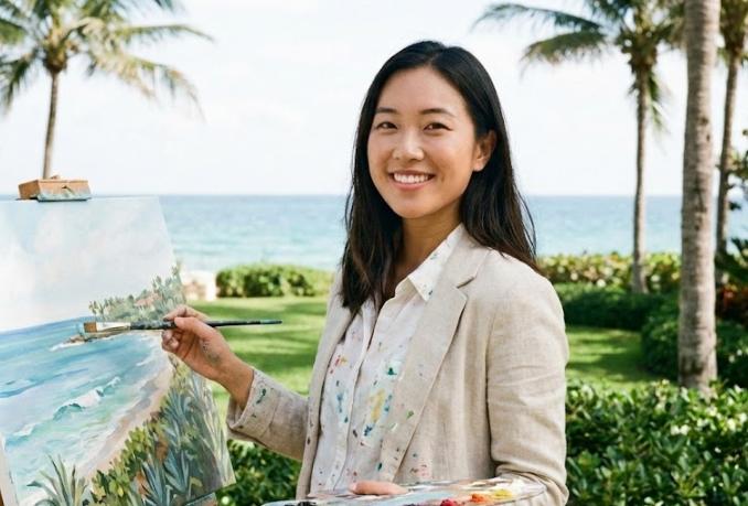 A 24-year-old Oriental artist devoted to nature-inspired painting - is contributing a refined and contemplative artistic voice to Palm Beach through original works that explore coastal landscapes, botanical forms, and the changing light of the natural environment.
