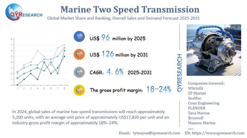 Unlock the Future of the Marine Two Speed Transmission Market: Comprehensive Global Market Report 2025-2031Global leading market research publisher QYResearch published the release of its latest report, "Marine Two Speed Transmission - Global Market Share, Ranking, Sales, and Demand Forecast 2025-2031". This in-depth report provides a complete analysis of the global Marine Two Speed Transmission market, offering critical insights into market size, share, demand, industry development status, and future forecasts. Whether you're a stakeholder, investor, or industry player, this report equips you with the data and strategies needed to stay ahead in a rapidly evolving market.