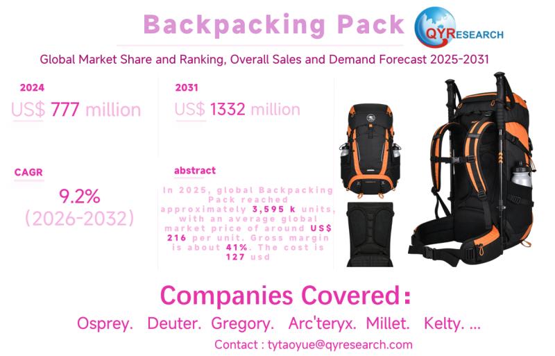 Unlock the Future of the Backpacking Pack Market: Comprehensive Global Market Report 2025-2031Global leading market research publisher QYResearch published the release of its latest report, "Backpacking Pack - Global Market Share, Ranking, Sales, and Demand Forecast 2025-2031". This in-depth report provides a complete analysis of the global Backpacking Pack market, offering critical insights into market size, share, demand, industry development status, and future forecasts. Whether you're a stakeholder, investor, or industry player, this report equips you with the data and strategies needed to stay ahead in a rapidly evolving market.