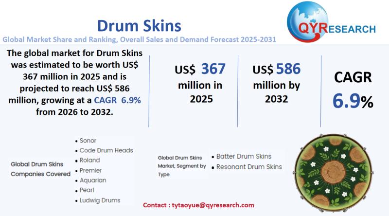The global market for Drum Skins was estimated to be worth US$ 367 million in 2025 and is projected to reach US$ 586 million, growing at a CAGR of 6.9% from 2026 to 2032.