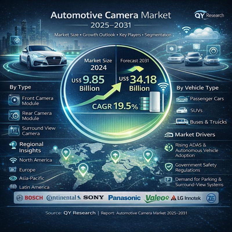 LOS ANGELES, United States - According to QY Research, the global Automotive Camera Market is entering a phase of accelerated growth as vehicle manufacturers intensify investments in safety, driver assistance, and autonomous technologies. As detailed in the newly released report titled "Global Automotive Camera Market Share and Ranking, Overall Sales and Demand Forecast 2025-2031," the market was valued at US$ 9.84 billion in 2024 and is projected to reach US$…