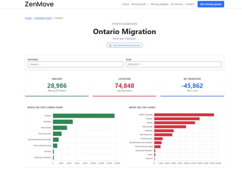 👉 Example: Ontario Migration (2020/2021) - https://zenmove.ca/migration/ontario/2020-2021