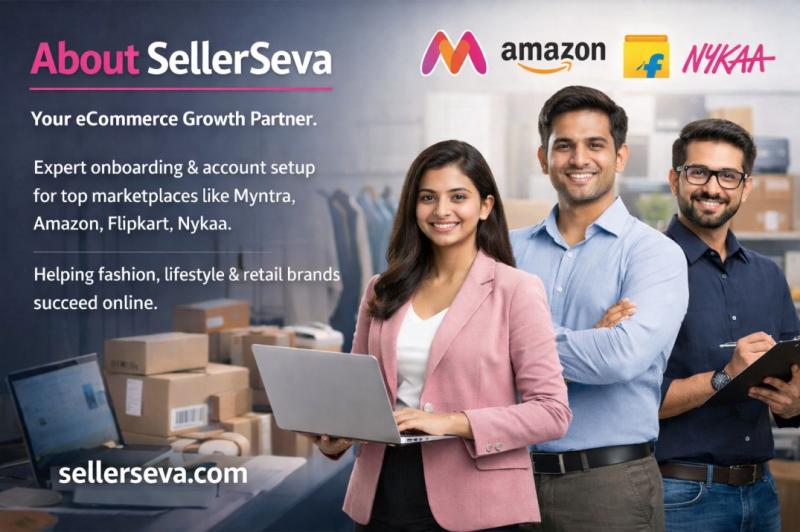 SellerSeva is a professional eCommerce support company providing expert seller onboarding and account setup services for leading marketplaces like Myntra, Nykaa, Amazon, and Flipkart. The company helps fashion, lifestyle, and retail brands start and scale their online business with ease.
