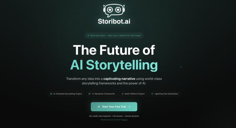 Storibot.ai transforms generic AI content into character-driven stories using Hollywood storytelling frameworks.