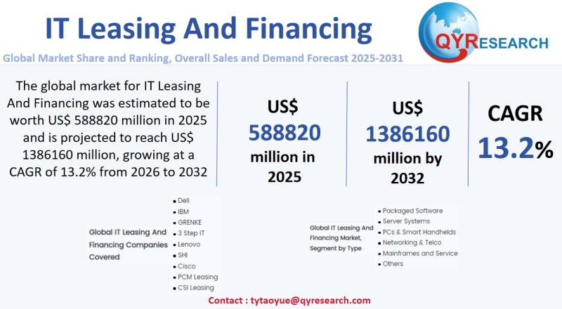 Global leading market research publisher QYResearch published the release of its latest report, "IT Leasing And Financing - Global Market Share, Ranking, Sales, and Demand Forecast 2025-2031". This in-depth report provides a complete analysis of the global IT Leasing And Financing market, offering critical insights into market size, share, demand, industry development status, and future forecasts.…