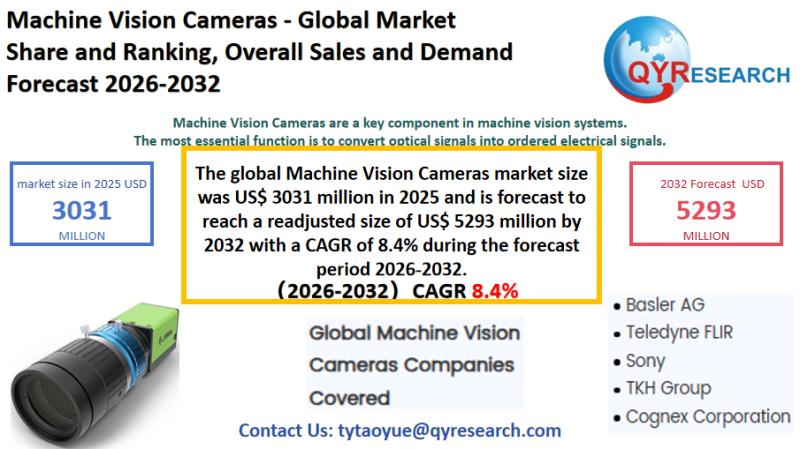 The global market for Machine Vision Cameras was estimated to be worth US$ 3031 million in 2025 and is projected to reach US$ 5293 million, growing at a CAGR of 8.4% from 2026 to 2032.