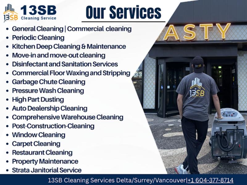 Delta, British Columbia, Canada, January 5, 2026 .13SB Cleaning Services Delta/Surrey/Vancouver (https://share.google/Ba884gG2JMu1mt7A4)is a premier commercial and residential cleaning and property maintenance company serving Delta, Surrey and other nearby areas and based in Delta, British Columbia, the company has established itself as a trusted partner for property owners, strata corporations, commercial businesses, and residential clients requiring comprehensive, reliable cleaning and maintenance solutions.