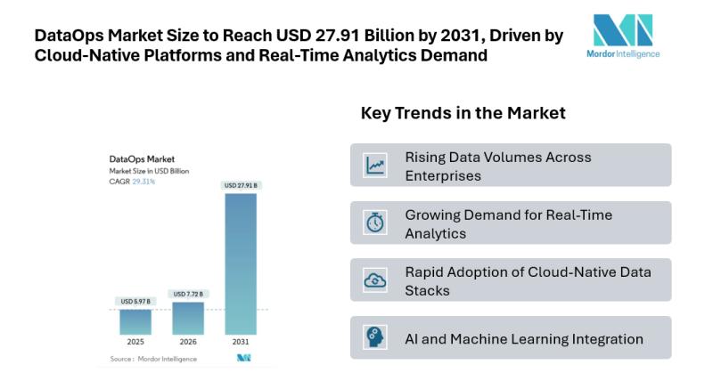 According to Mordor Intelligence, the DataOps market size is estimated at USD 7.72 billion in 2026, rising from USD 5.97 billion in 2025, and projected to reach USD 27.91 billion by 2031, expanding at a 29.31% CAGR during 2026-2031. This strong market growth reflects the…