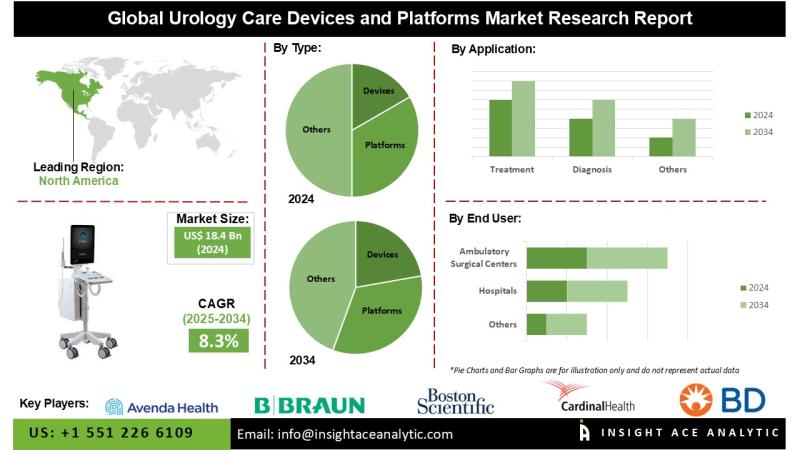 InsightAce Analytic Pvt. Ltd. announces the release of a market assessment report on the "Global Urology Care Devices and Platforms Market- (By Product (Devices, Platforms), By Application (Treatment, Diagnosis and Monitoring), By Indication (Kidney Diseases, Urological Cancer and Benign Prostatic Hyperplasia, Pelvic Organ Prolapse, Other Diseases), By End User (Hospitals, Ambulatory Surgery Centers, Clinics, Dialysis Centers , Home Care Settings)), Trends, Industry Competition Analysis, Revenue and Forecast To 2034."According to the latest research by InsightAce Analytic, the Global Urology Care Devices and Platforms Market Size is valued at USD 18.4 Bn in 2024 and is predicted to reach USD 40.4 Bn by the year 2034 at a 8.3% CAGR during the forecast period for 2025-2034.