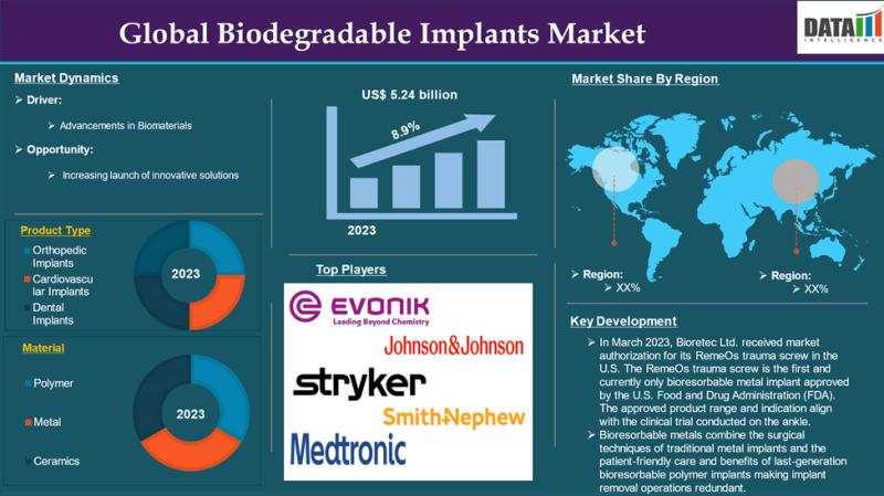The Global Biodegradable Implants Market reached US$ 5.24 billion in 2023 and is expected to reach US$ 10.31 billion by 2031, growing at a CAGR of 8.9% during the forecast period 2024-2031.
