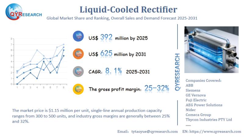 The global market for Liquid-Cooled Rectifier was estimated to be worth US$ 368 million in 2024 and is forecast to a readjusted size of US$ 625 million by 2031 with a CAGR of 8.1% during the forecast period 2025-2031.