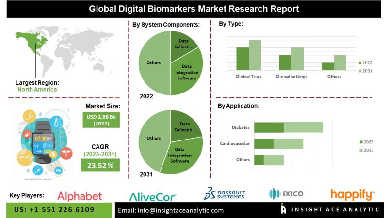 InsightAce Analytic Pvt. Ltd. announces the release of a market assessment report on the "Global Digital Biomarkers Market Size, Share & Trends Analysis Report By Applications (Sleep and Movement Disorders, Cardiovascular, Psychiatric Disorders (Mood and Behavior), Chronic Pain, Neurodegenerative Diseases, Diabetes, Respiratory Diseases, Others), By System Components (Data Collection Tools (Wearables Devices, Implantable and Mobile Applications) and Data Integration Software), By Type (Clinical Trials and Clinical Settings), by End-User (Biopharmaceutical…