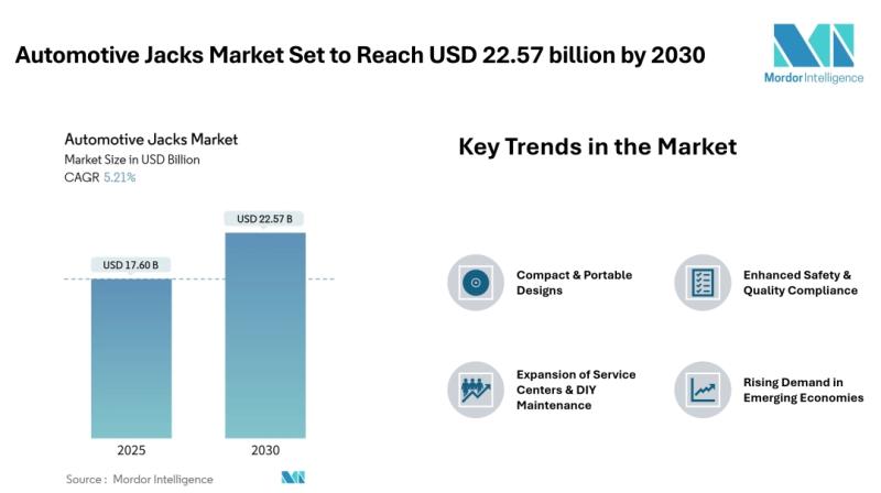 According to Mordor Intelligence, the automotive jacks market [https://www.mordorintelligence.com/industry-reports/automotive-jacks-market?utm_source=abnewswire] size stands at USD 17.6 billion in 2025 and is forecast to reach USD 22.57 billion by 2030, advancing at a 5.21% CAGR over the period. The role of automotive jacks remains essential in routine vehicle maintenance, tire replacement,…