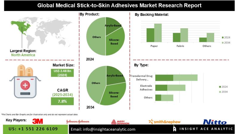InsightAce Analytic Pvt. Ltd. announces the release of a market assessment report on the "Global Medical Stick-to-Skin Adhesives Market - (By Product (Acrylic-Based, Silicone-Based, Rubber-Based, Hydrogel-based, Others), By Backing Material (Paper, Fabric, Plastic, Other Materials), By Material Type (Electrode Adhesives, Transdermal Drug Delivery Adhesives, Specialized Adhesives), By Application (Surgery, Wound Dressing, Ostomy Seals, Other Applications), By End User (Hospitals & Clinics, Home Care Settings, Other End Users)), Trends, Industry Competition…